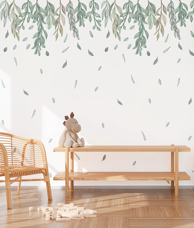 Leve o charme da natureza para a decoração com o adesivo de folhagem verde em aquarela.