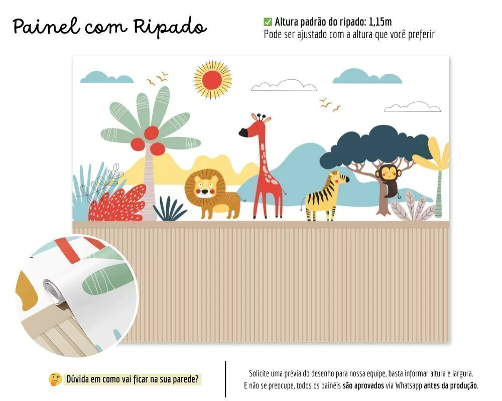 O Papel de Parede Infantil Safari Colorido transforma o quarto em uma selva divertida! Com animais alegres e cores vibrantes, é autocolante, fácil de aplicar e estimula a imaginação dos pequenos.