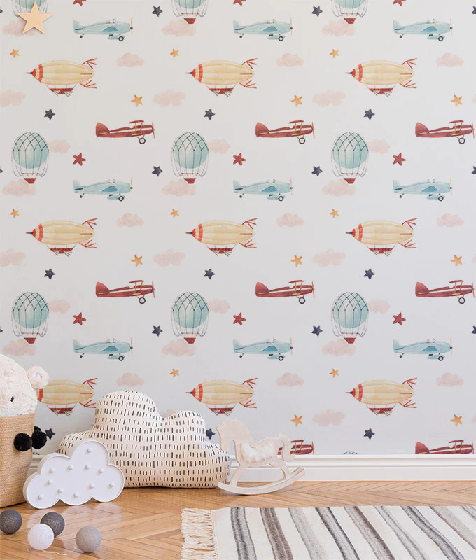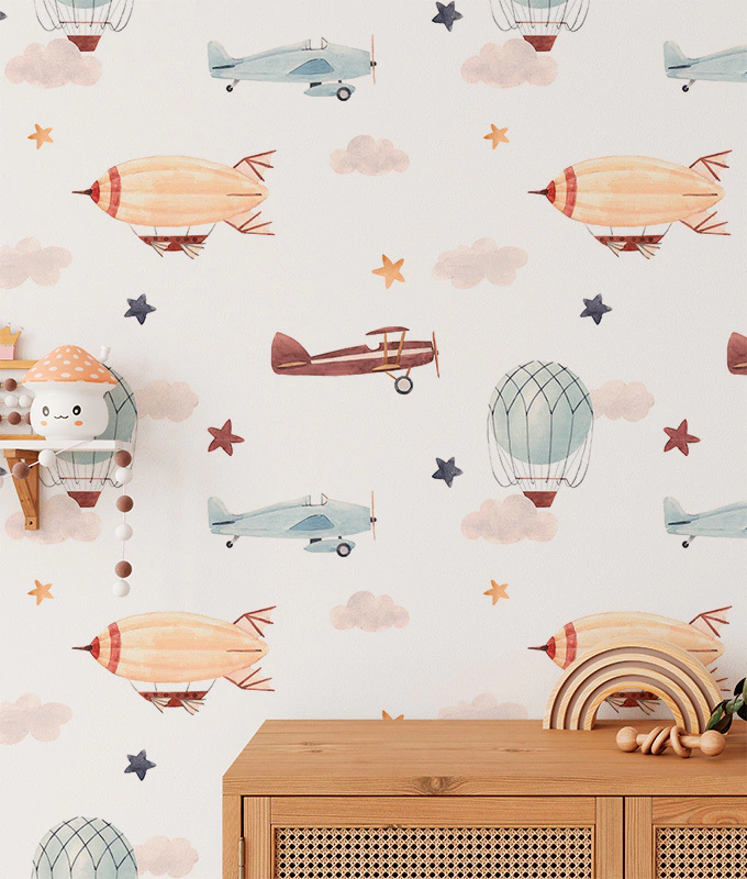 Procurando uma estampa leve, delicado e moderno para o quarto do seu filho? O Papel de parede Aviões e Balões aquarela será sua escolha perfeita! Ele tem fundo branco e cores leves. Use a calculadora aqui ao lado e veja quanto vai precisar comprar para sua parede, sem disperdício ;)