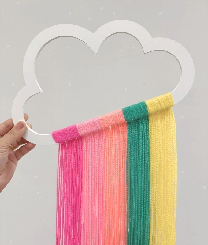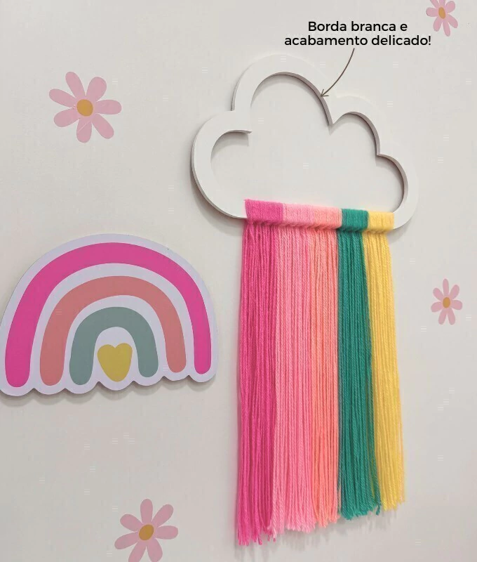 🎨 Acabamento delicado – produzida em MDF branco com fios de lã coloridos, garantindo durabilidade e um toque artesanal.