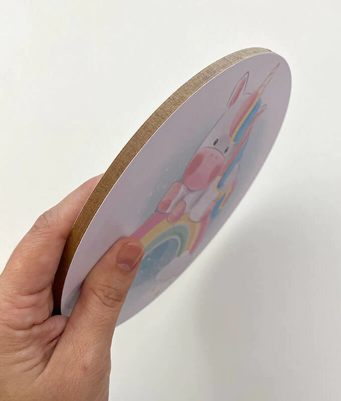 Nossas plaquinhas são produzidas em MDF 6mm com vinil impresso de alta qualidade fosco. Tem ótimo acabamento e durabilidade.